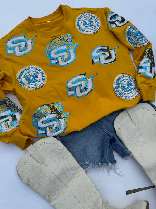 Gold Southern University Sequin Logo Sweatshirt!! Slightly CROPPED! OVERSIZED FIT!!! PLEASE SEE SIZE CHART!!!